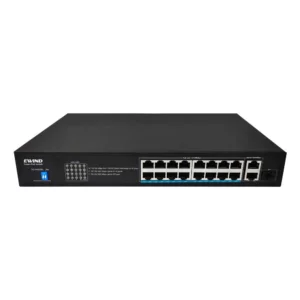 شرکت ای ویند (Ewind) در سال 2017 در چین فعالیت خود را در زمینه تولید تجهیزات شبکه آغاز کرده و به عنوان پنج تامین کننده برتر در صنعت تجهیزات ارتباطی شبکه شناخته شده است.یک سوئیچ 19پورت از این برند است که از16پورت 10/100M POE، دو پورت 1000M RJ45 ویک پورت 100/1000M SFPبهره می برد. این محصول از استاندارد IEEE 802.3af/atپشتیبانی می کند.